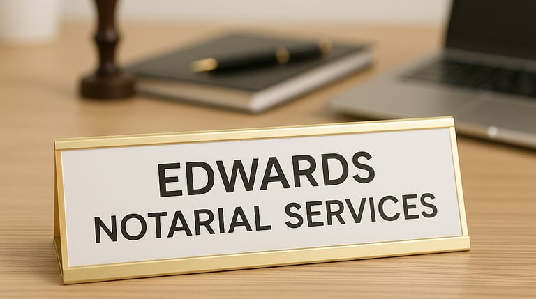 Serving Prince George, Colonial Heights, and Fort Gregg-Adams, Virginia Area. Edwards Notarial Services, LLC is your reliable partner for professional notary services. We specialize in detailed, efficient, and legally sound document notarization for individuals, families, and businesses. Whether you need general notary work, loan signings, or fingerprinting, we’re here to make the process smooth, secure, and stress-free.